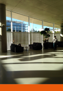 Sur les salons de couleur grise, à droite de la porte, l'étudiant est-il toujours allongé ? Serait-il déjà fatigué de sa journée ?