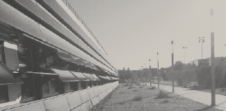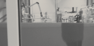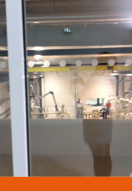 Comment se fait-il que les machines ne paraissent ni vieilles ni récentes ? Comment peut-on dire qu’elles sont blanches mais sales ? Comment pourrait-on expliquer que le cœur de la machinerie soit caché, tandis qu’il y a une explosion de tuyaux dans toutes les directions ? Font-ils communiquer les machines elles ? L’une d’elle a-t-elle vraiment son bec verseur qui donne dans la cuve d’une autre ? S’agit-il de la distillerie de l’IFSTTAR ? Comment peut-on faire une hauteur sous plafond si impressionnante ? Voit-on ces machines semées dans la pièce ou plutôt ce cube bétonné ? Quelle est cette séparation au fond avec un autre espace ? Pourquoi avoir installé ce volet roulant géant ? Quelle est l’utilité d’une percée 16 : 9ème juste à côté d’une porte géante ? Qu’est-ce qui me fait penser à un passe-plat géant ? A qui sont ces pieds ? A qui est cette démarche ni molle ni pressée ? Sont-ils étudiants, enseignants, professionnels de la machinerie ? La petite percée est-elle la plus intéressante, puisqu’elle est surprenante ? Les machines-alambic, à quoi servent-elles ?