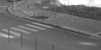 Est-ce un naufragé perdu sur son île dans cette mer de béton ? Que font ces résidus de pelouse, dans l’angle en bas à droite, sur cette bande grise ?