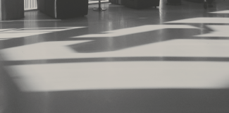 Les colonnes verticales qui se succèdent se bousculent-elles vraiment vers le fond de la scène ? Entre de vieux cartons ? Les lampadaires sont-ils beaux ? Comment se fait-il qu'ils soient immobiles ? Est-ce leur coque brillante qui accroche ainsi la lumière ? Pourquoi plongent-ils la salle dans la pénombre ? Est-ce le flou des reflets qui chatoie entre ces éléments ? La vitre montre-t-elle le derrière en même temps que le devant ? Réussit-elle l’exploit de comprimer plusieurs espaces dans sa mince lame de verre ? Devine-t-on, de derrière, la rigidité rectiligne d'un couloir ? Est-il possible que celui-ci soit rythmé par les surbrillances d'un éclairage qui se répète ? Et là, près de la fenêtre, pourquoi une silhouette nous tourne-t-elle le dos ?
