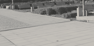Les trottoirs qui semblent en travaux sont-ils au premier plan près d'un pont ?